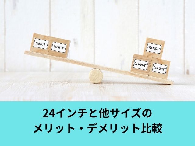 ここでは、24インチを中心に、20インチ・22インチ・26インチとの違いを比較してみましょう。